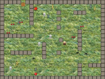 Задача игрока - сбор фруктов, разбросаных по игровому полю в десяти уровнях. Противники - скелеты, пауки и привидения, встреча с ними ли шает героя жизни и заработаных баллов.