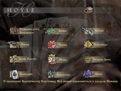 Коллекция из 12 классических карточных игр, таких как "Сумашедшие восьмерки", "Война", "Бридж", "Покер", "Черви", "Пирамида", "Джин Рамми", "Юкер", "Старая дева", "Клондайк", "Криббидж", "Пики".